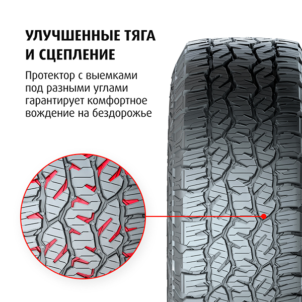 - Улучшенное сцепление на рыхлых поверхностях бездорожья.